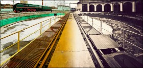 Тип объекта: Архив Месторасположение: Москва, Россия Охраняемость: нулевая Состояние: среднее Описание Старинный поворотный круг рядом с веерным паровозным депо. Не используется и не функционирует, пройти можно со стороны станции. Большинство подъездов со стороны здания депо разрушены.
