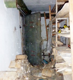 Архивы с документацией вынесли все, остались одни полки. В убежище царит хаос, почти все ящики с имуществом ГО перевернуты. Залазы особо не запиливают, но переодически вешают замки на решетки возле гермодверей.