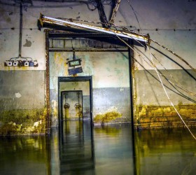 Затопленное убежище имеет два зала для укрываемых, ФВУ, баки с водой, дизель, санузлы, три выхода в здание. Аварийный выход уничтожен. Уровень воды по пояс и зависит от количества осадков. Имущество ГО отсутствует.