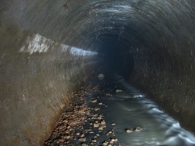 Тип объекта: Подземное Месторасположение: Санкт-Петербург, Россия Охраняемость: нулевая Состояние: отличное Описание Глубинный канализационный коллектор длиной около 700 метров, диаметром 2 метра и глубиной залегания 18 метров. Представляет собой железобетонный тоннель круглого сечения, соединяющий три шахты. Начинается трубчатым перепадом из мелкой дренажной трубы, заканчивается трубчатым перепадом в шахте магистрального коллектора.