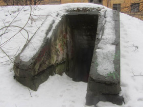 Тип объекта: Подземное Месторасположение: Санкт-Петербург, Россия Охраняемость: нулевая Состояние: плохое Описание Небольшой холмик во дворах. Имеет два наклонника, но один из них закрыт, а во второй вход свободный. Внутри достаточно чисто, есть остатки ФВУ и гермодвери. С улицы через холмик сделана бетонная лестница. Затоплен примерно по щиколотку.