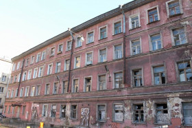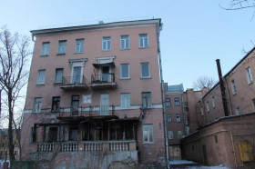 Тип объекта: Остальное Месторасположение: Санкт-Петербург, Россия Охраняемость: нулевая Состояние: плохое Описание Четырёхэтажный жилой дом. Был построен в дореволюционное время, а затем реконструирован в 50-х годах 20 века. Интересен тем, что парадный фасад выходит во двор и имеет веранду на первом этаже на ширину четырёх окон с красивой балюстрадой. Внутри дома видны следы пожара, кое-где сохранилась…